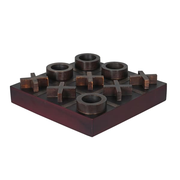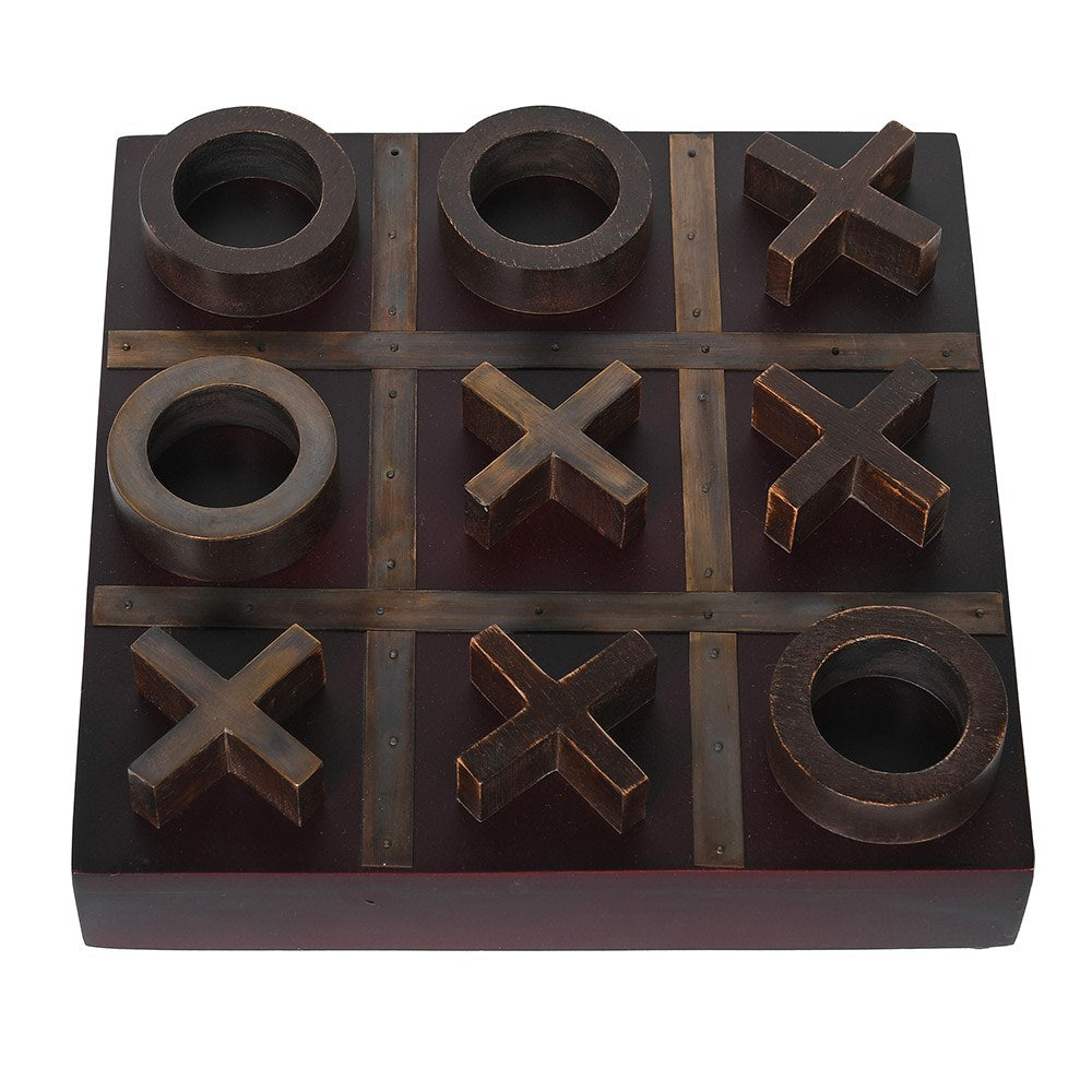 Bring timeless charm and classic entertainment into your home with this beautiful wooden Noughts and Crosses (Tic Tac Toe) set. Expertly designed with a vintage bronze finish, this piece blends rustic elegance with nostalgic fun, making it as much a décor accent as it is a game. Perfect for family game nights, coffee table conversation starters, or a thoughtful gift for a loved ones. When not in use, this set doubles as a striking display piece that adds warmth and style to any living room, study, or office.