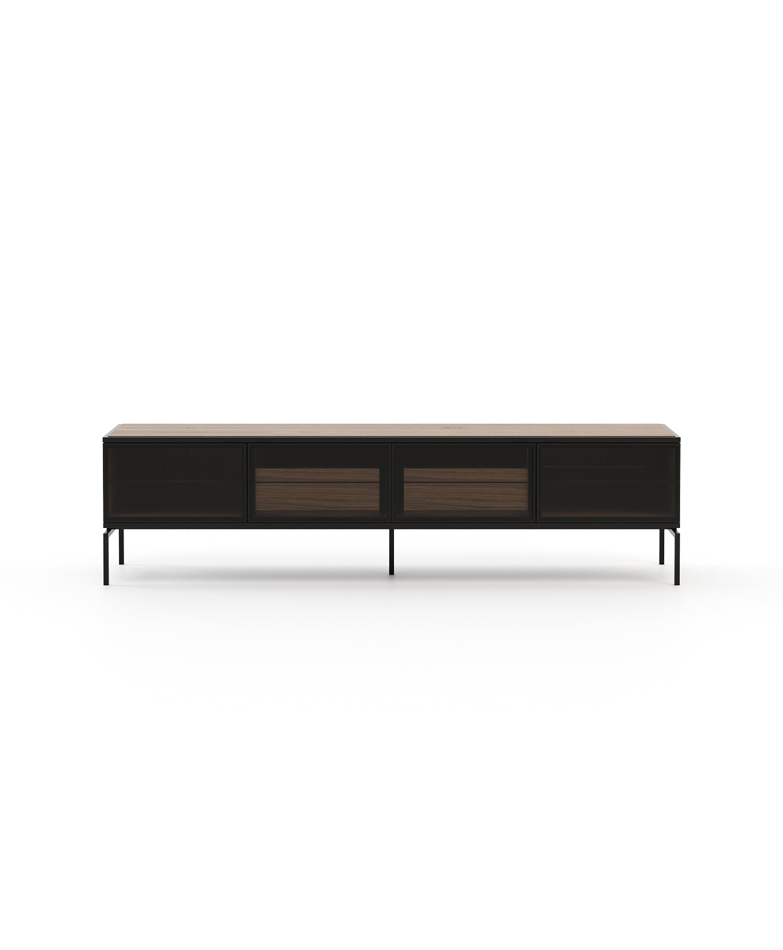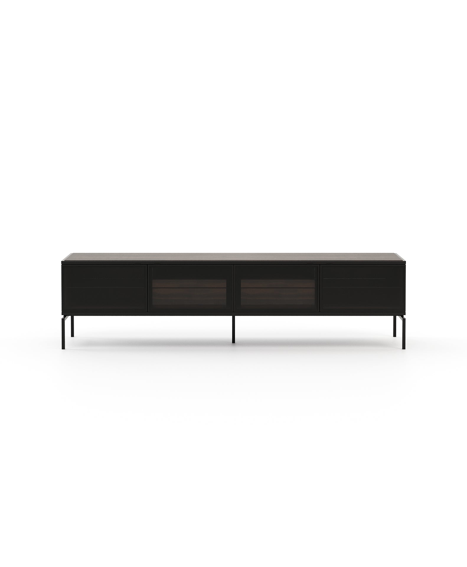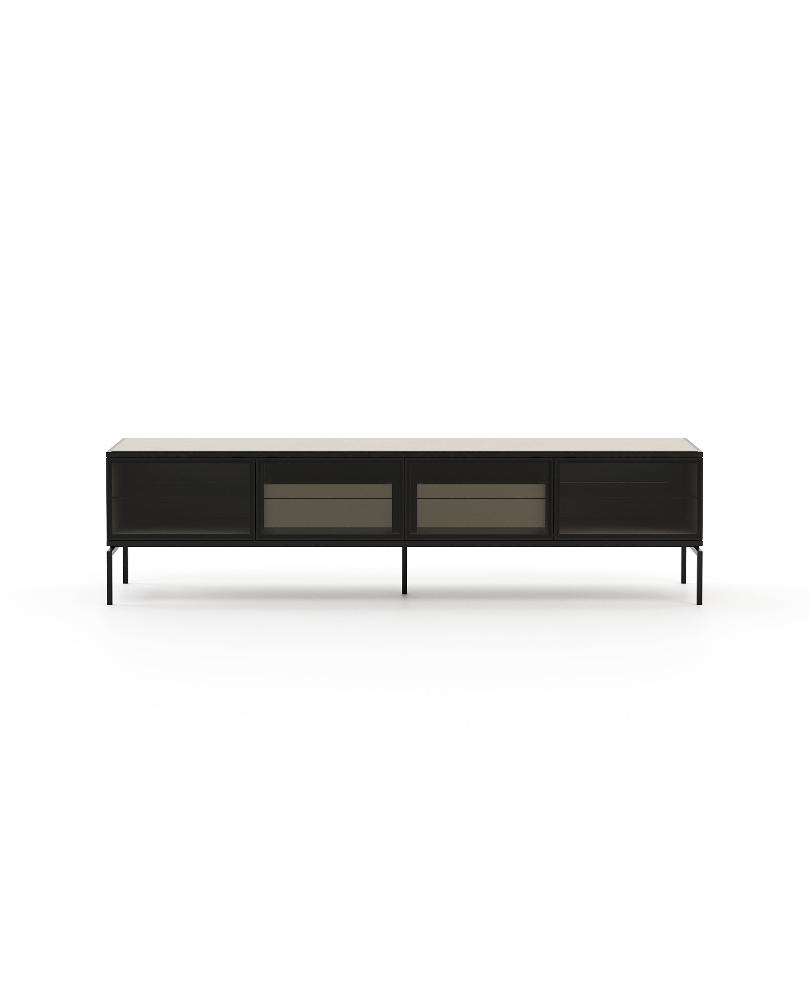 Austen is a highly functional and visually stunning TV cabinet with four sleek glass doors allowing multiple storage options. Designed as a chic display for home entertainment essentials, it's spacious tabletop meets the practical demands of modern living spaces with style and sophistication.