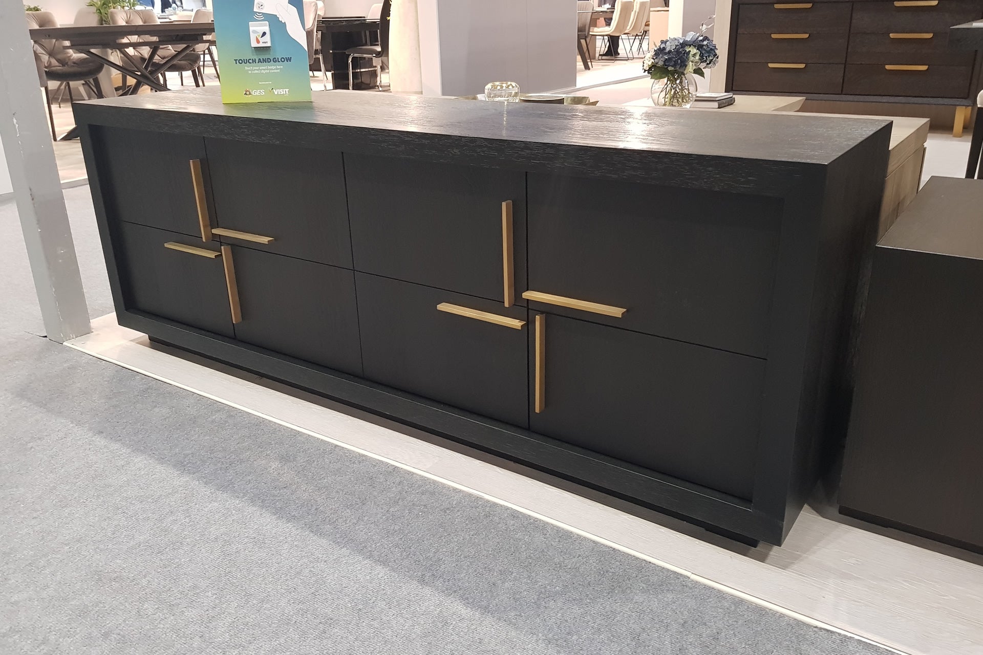 With six doors and a sleek, modern silhouette, the Bristol Sideboard is the epitome of clean-lined sophistication. Crafted in a richly textured dark brown oak veneer and finished with elegant gold handles, it brings both style and function to any space. Whether you're styling a contemporary home or completing an interior design project, the Bristol Sideboard offers a refined, timeless touch.