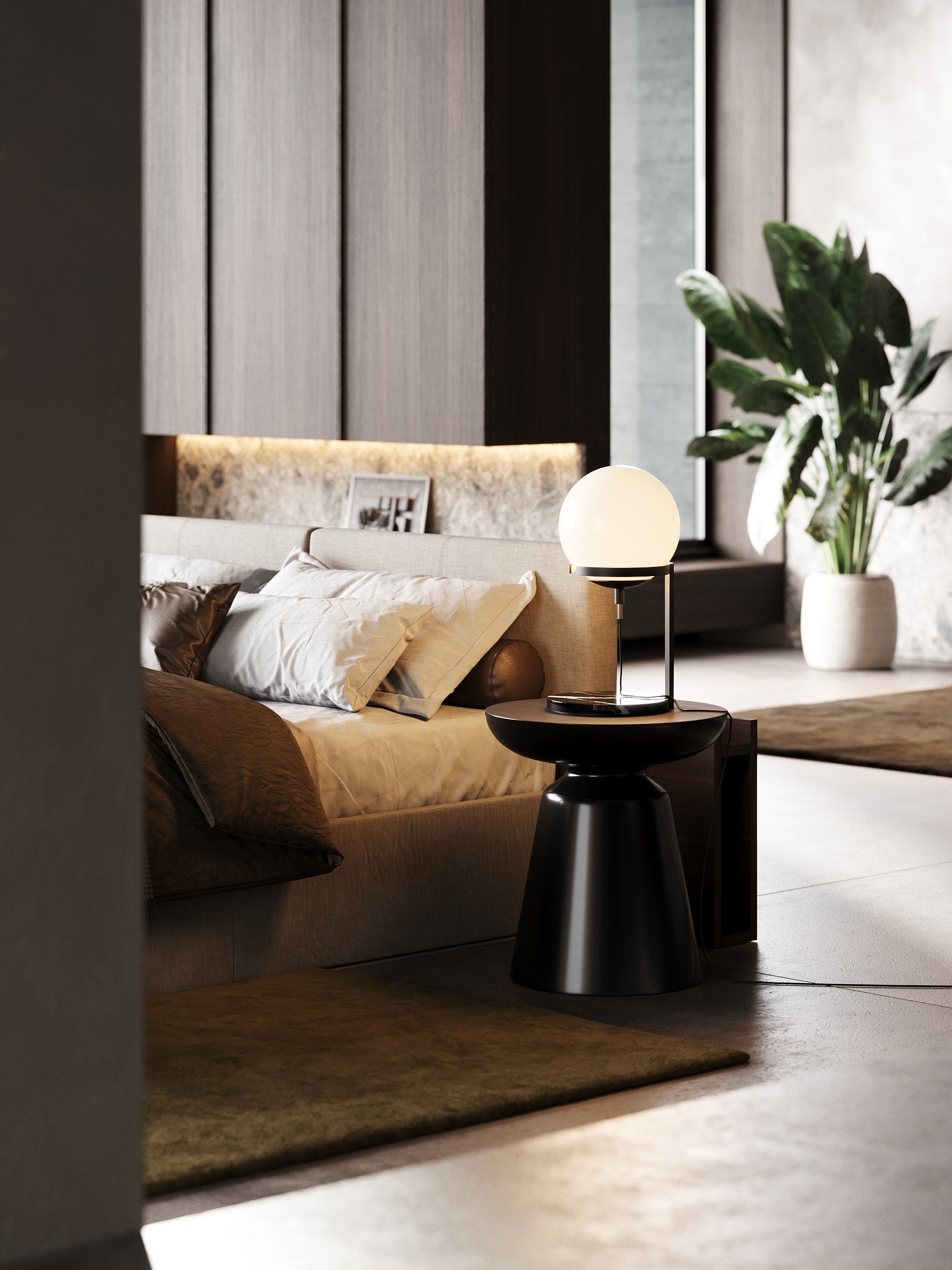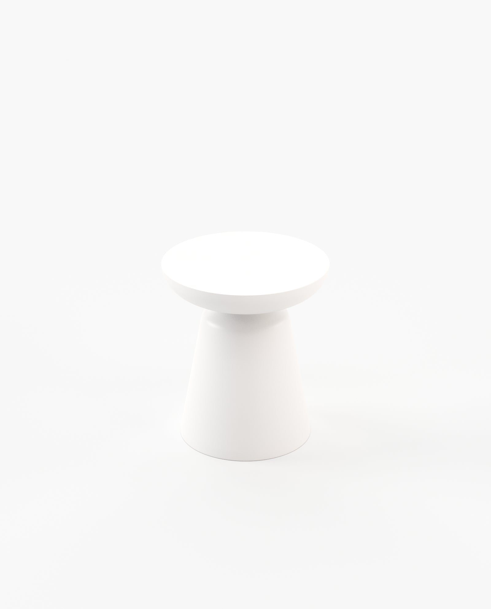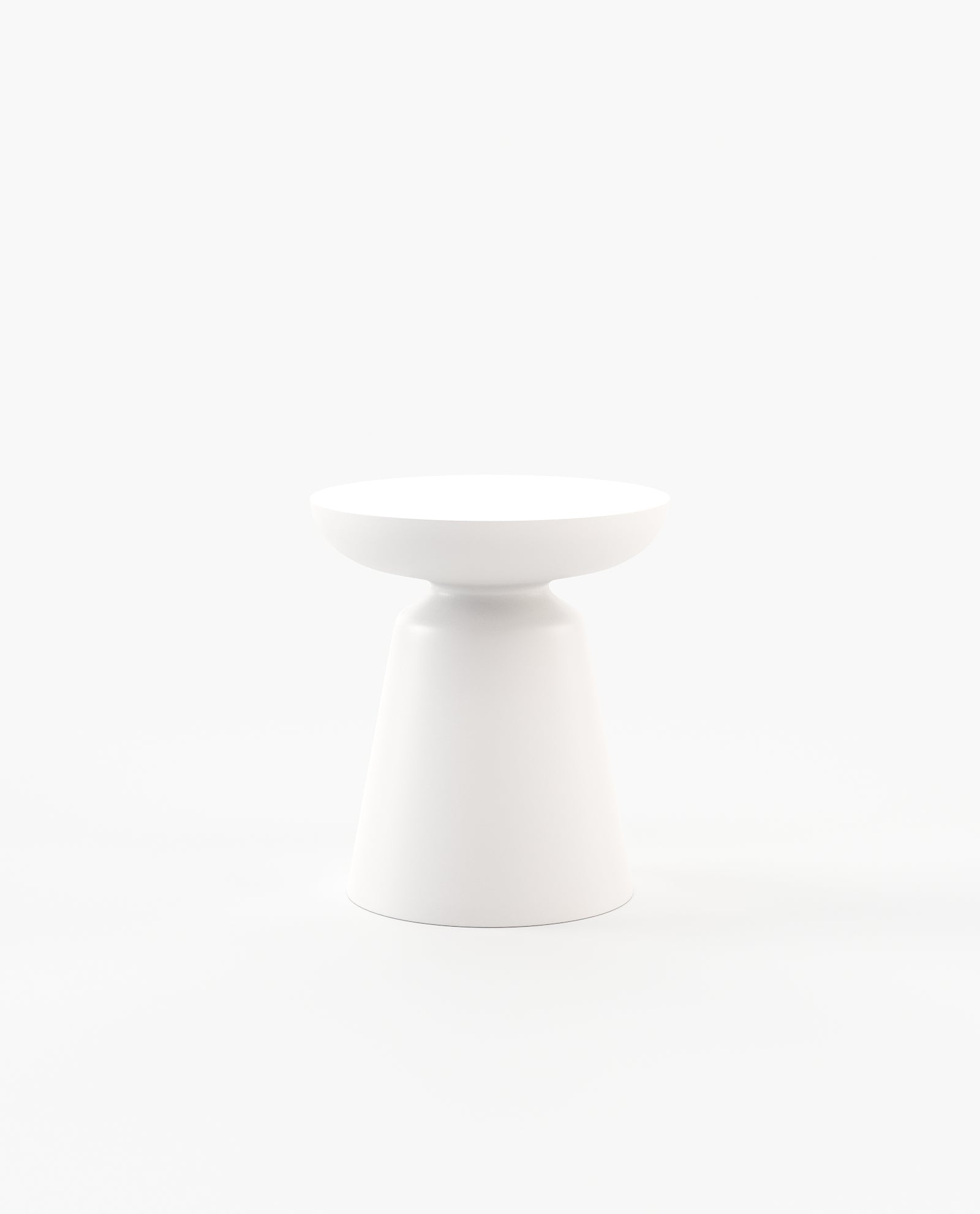 Cap is a modernist side table with a bell-shaped design, where the unique silhouette adds a distinctive touch to any living room decor, a truly eye-catching addition.