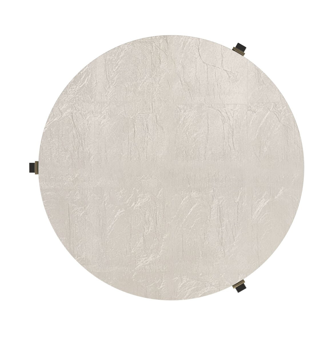 The circular top is finished in Soft Silver Leaf, offering a subtle luminosity that contrasts beautifully with the Rich Walnut lower shelf. Connecting the two is a sculptural Greek Key–inspired metal leg, artfully detailed in Deep Bronze and Platinum Gold, adding architectural interest and a sense of timeless sophistication.