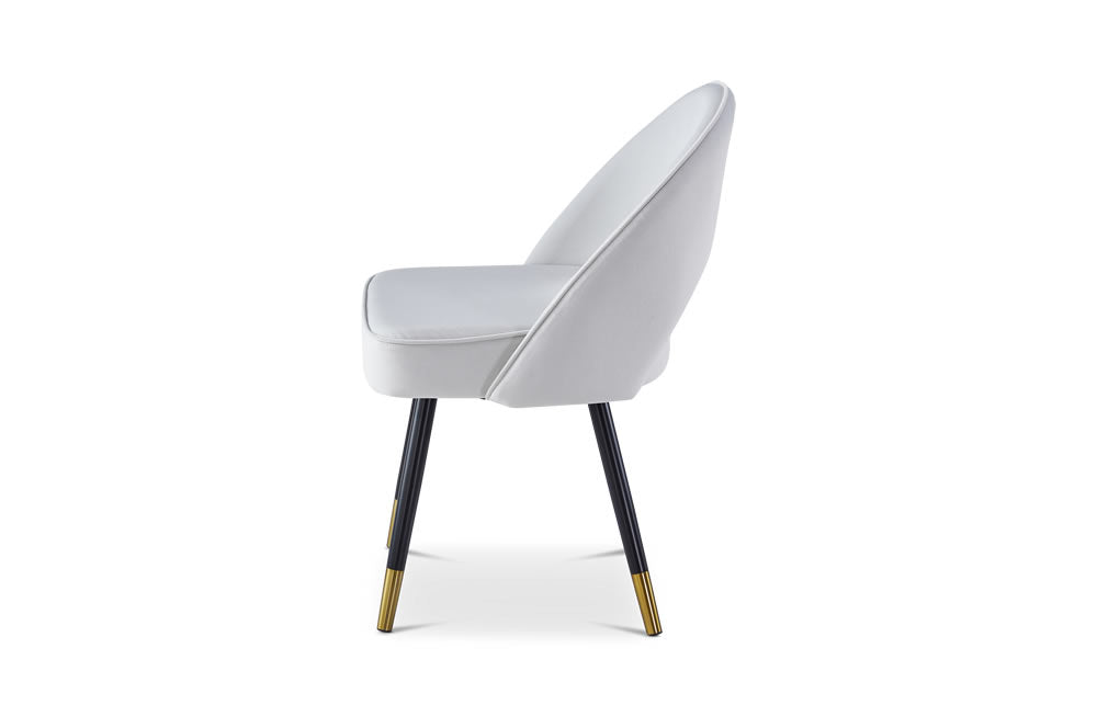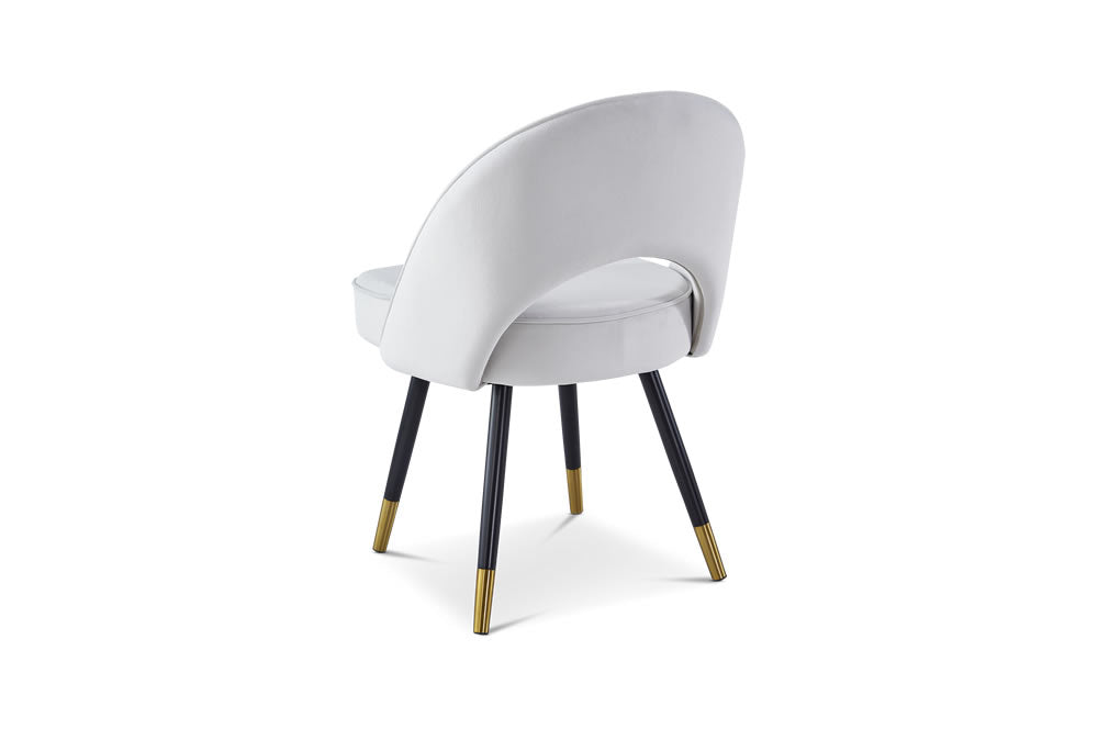 Elevate your dining space with the Hoxton Dining Chair, a perfect blend of contemporary style and luxurious comfort. Upholstered in a soft, light grey matte velvet fabric, these chairs offer a sophisticated look that complements any modern interior. The black legs with chic gold cups add a striking contrast, bringing a touch of elegance to your home. Whether you're hosting a dinner party or enjoying a quiet meal, the Hoxton Dining Chair provides both comfort and style. Sold in sets of two, it’s the ideal choice for achieving a polished, cohesive look in your dining room, kitchen, or any interior design project.