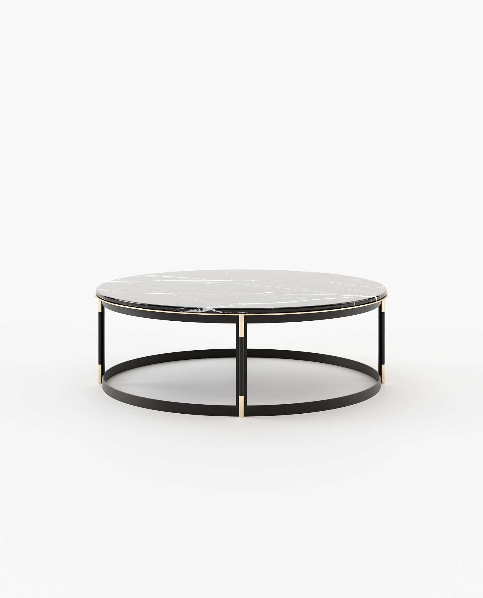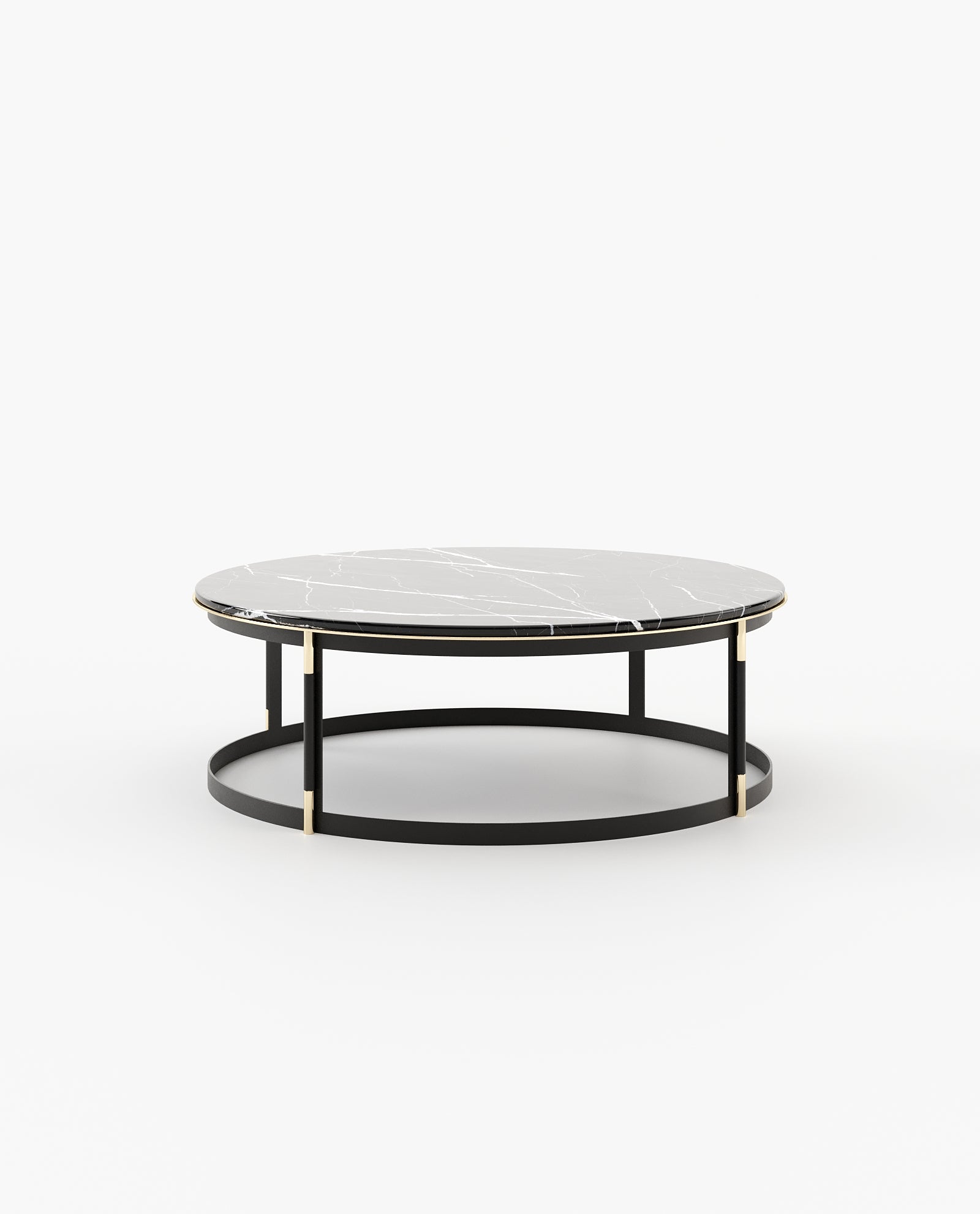 This elegant piece embraces the timeless allure of round coffee tables while infusing it with a touch of glamour. With its solid marble top, this exceptional creation is perfect for those with a peculiar taste for functional and stylish pieces.