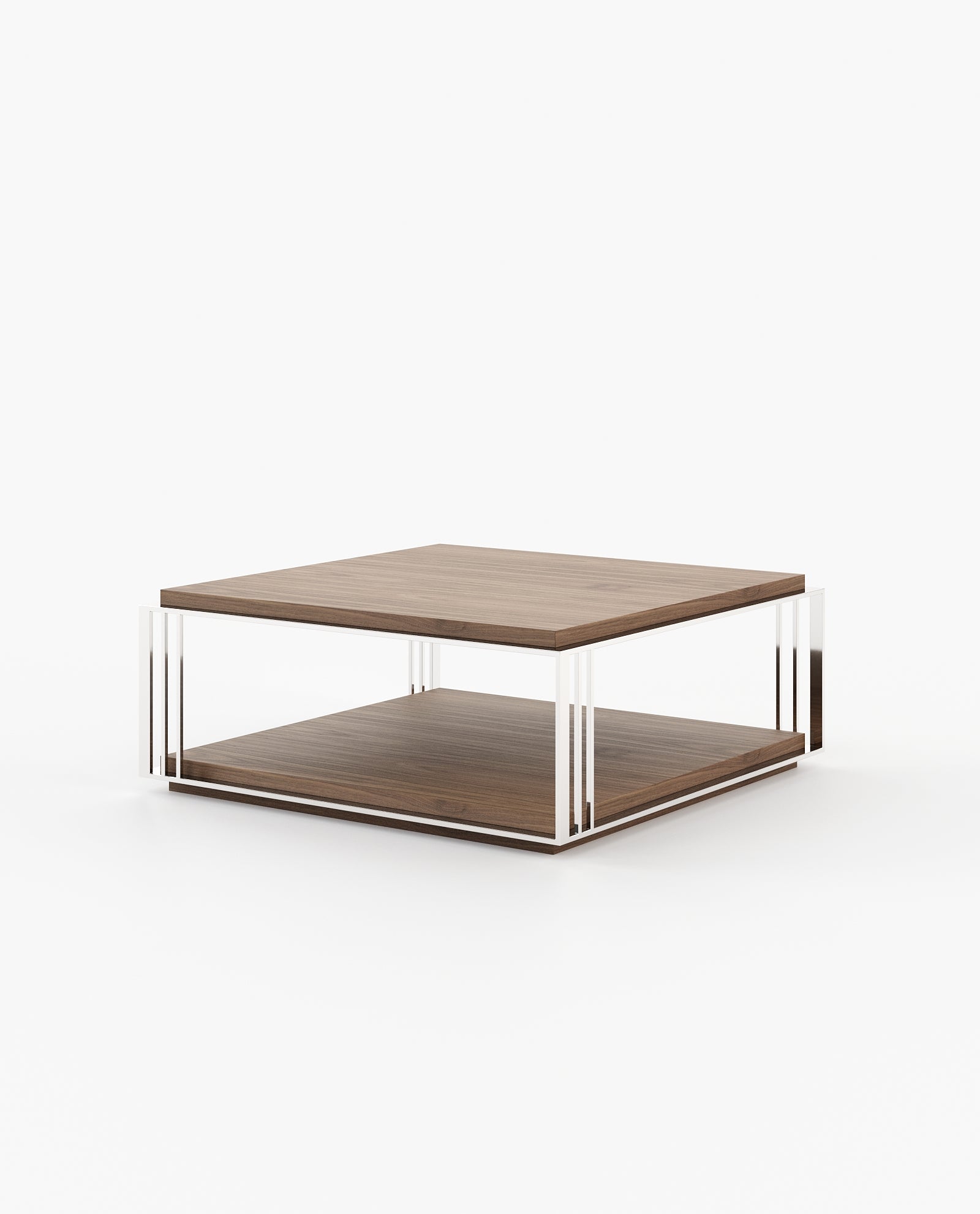 Elevate your living space with the timeless allure of the Megan modern wood coffee table. Crafted to seamlessly combine a wood top and a metallic structure with a low shelf for storage. With its sleek lines and minimalist design, the Megan Coffee Table encapsulates the essence of modernity. The warm and rich wooden finish brings a touch of nature indoors and complements a wide range of decorative styles.