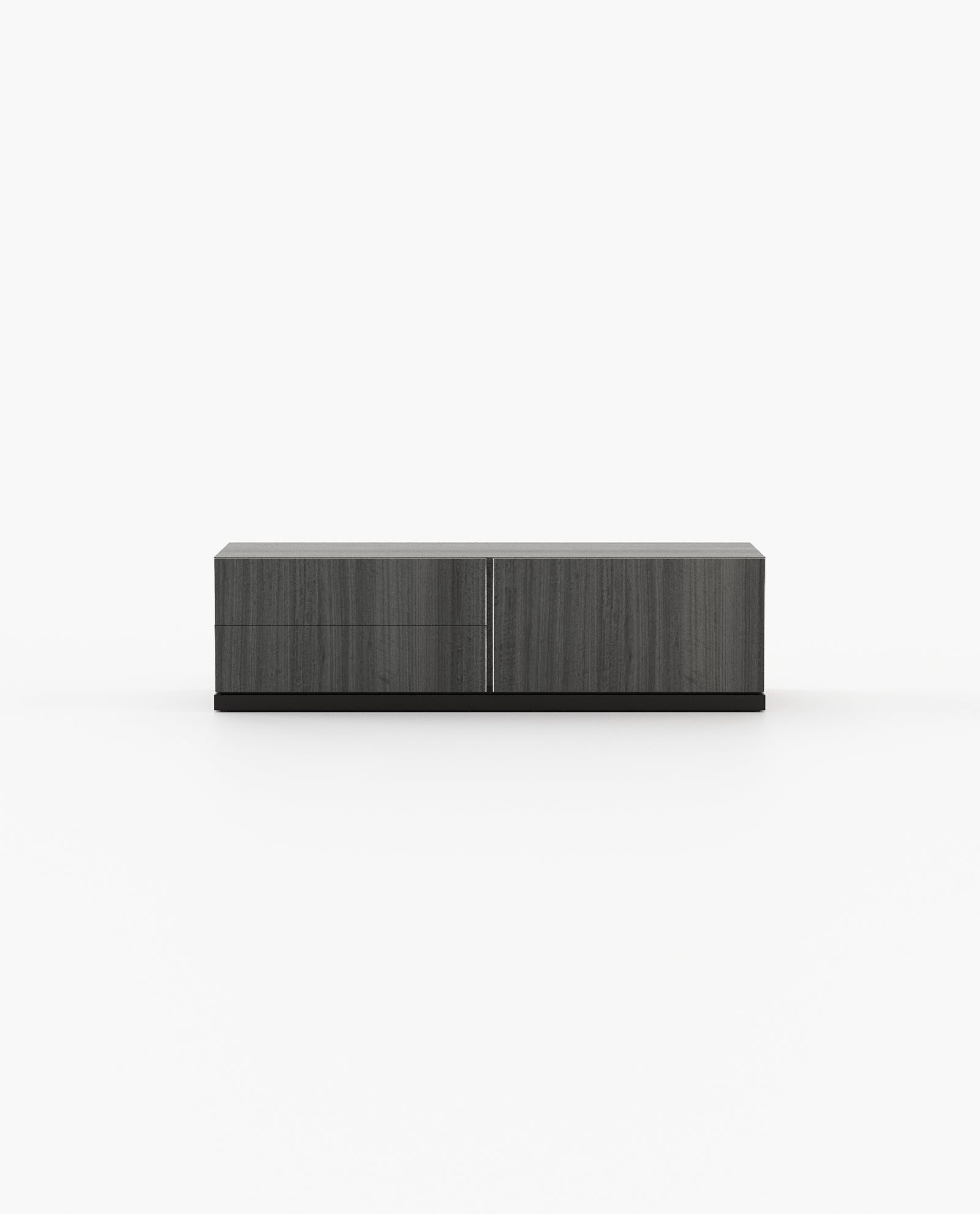 Pam is a TV cabinet with drawers and shelves that bring sophistication to any entertainment space. With its wooden structure and clean lines, it provides ample storage space while adding a touch of elegance and refinement. Perfect for both plain and vibrant spaces, its rectangular silhouette effortlessly complements any casual or contemporary living room.