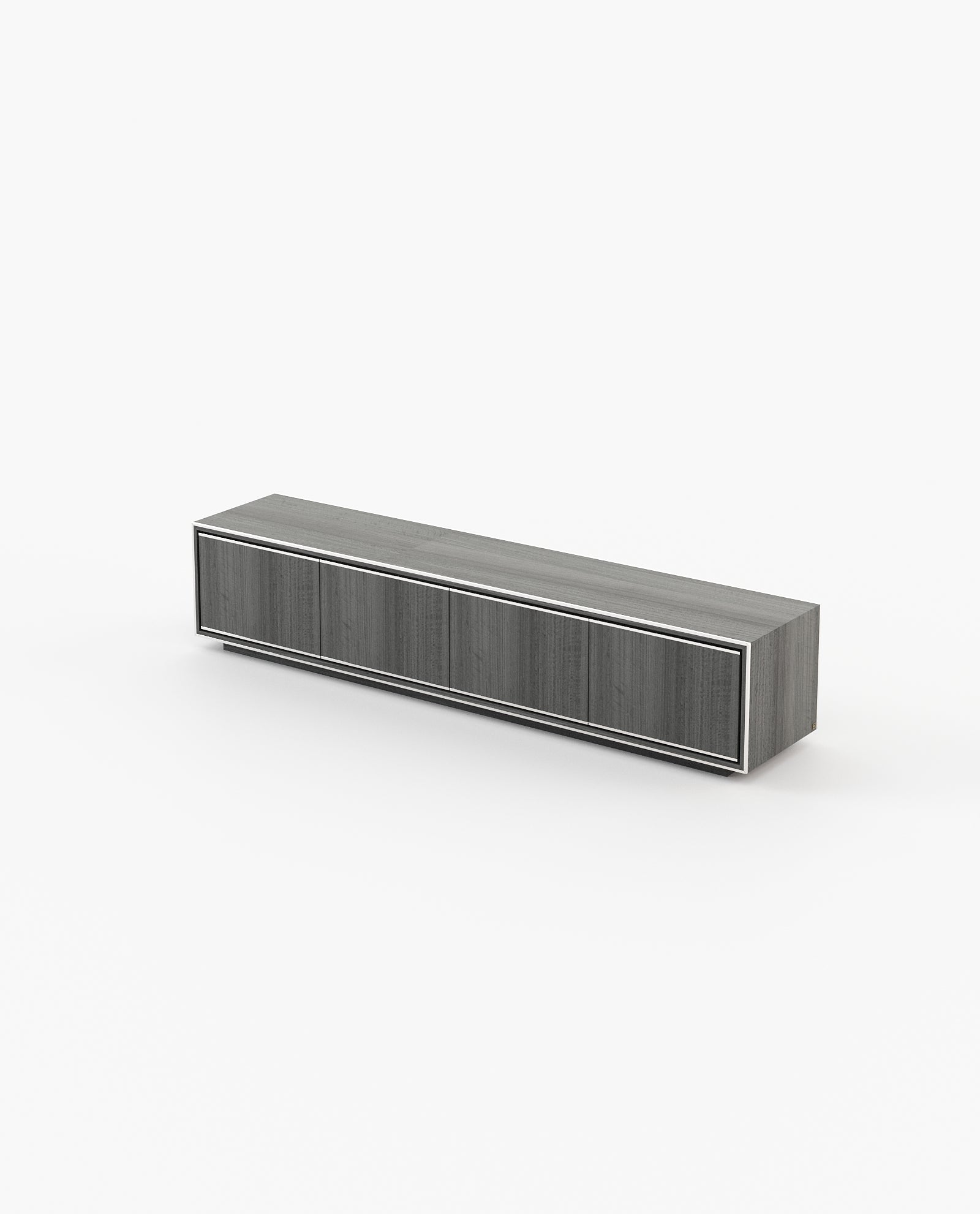 The Rick TV cabinet is a balance of functionality and beauty, featuring four doors and metallic details that can be customised with a wood or marble structure. It is a versatile piece for contemporary living rooms or master bedrooms.