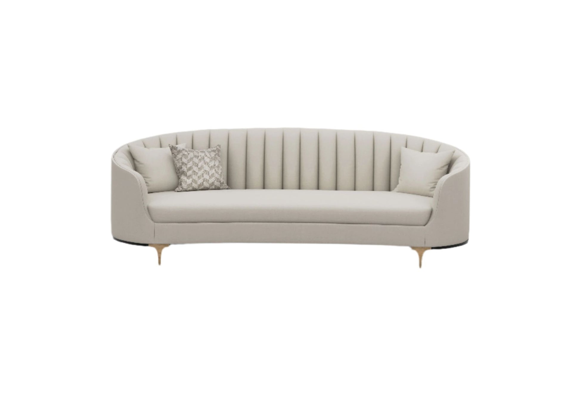 Elevate your living space with the Celeste Luxury Curved Sofa, a masterpiece of modern elegance and comfort. Featuring a gracefully curved silhouette with vertical channel tufting, this sofa blends timeless design with contemporary appeal. Upholstered in soft, high-quality fabric and supported by sleek gold-tipped legs, it offers a sophisticated touch to any interior.
