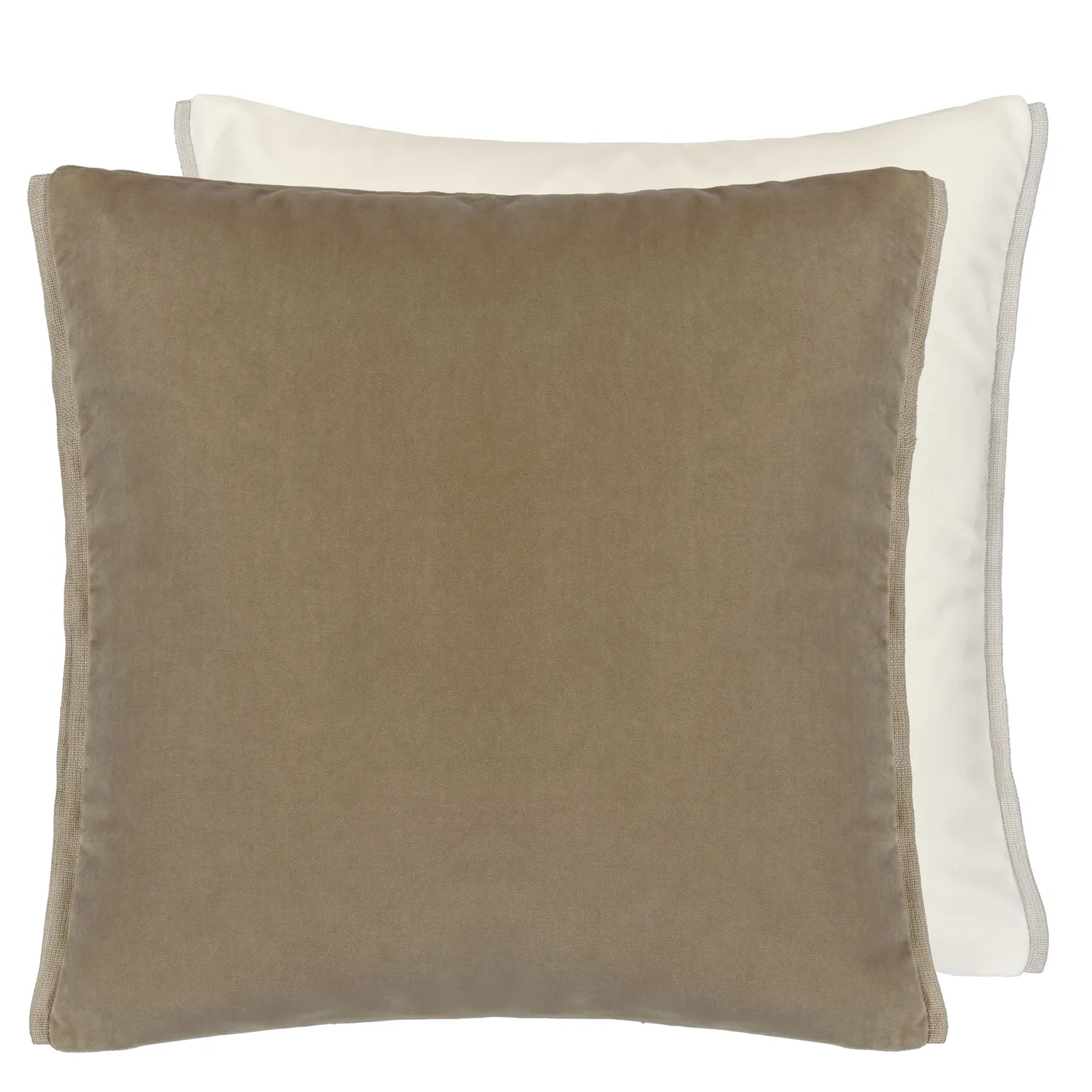 Our best-selling cotton velvet Varese takes centre stage in this luxurious square velvet cushion, designed to elevate your living space with refined style and comfort. Featuring a sophisticated parchment hue on the front, the cushion reverses to a rich roebuck shade, offering a beautiful contrast that adds depth and warmth to any room.