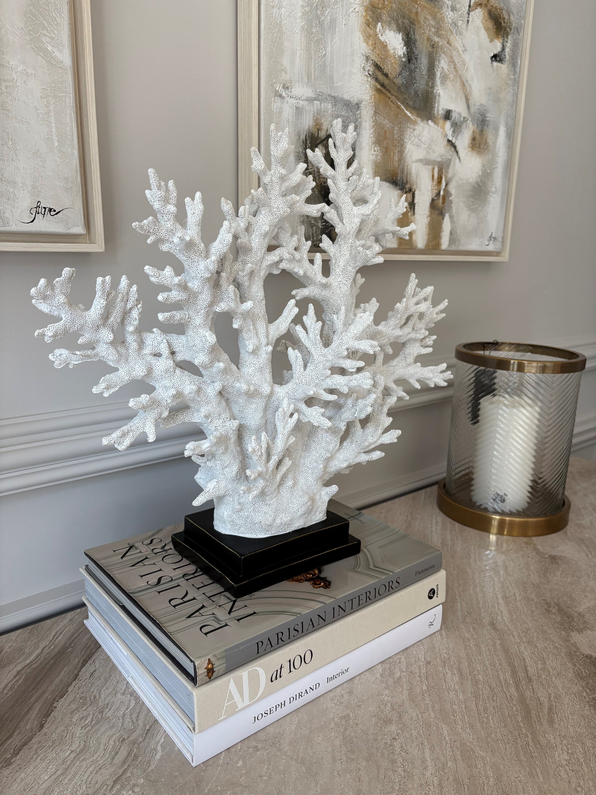 A faux white coral tree on stand offers the elegance and organic beauty of coral in a chic, low-maintenance form. Its timeless design fits seamlessly into coastal, modern, and minimalist interiors, making it a versatile and stunning decorative piece. Whether placed as a statement centerpiece or as an elegant accent, this tree adds sophistication, texture, and a touch of nature-inspired elegance to any space.